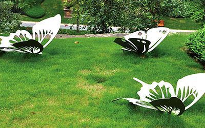 剪影雕塑,看的就是個輪廓!把你想做的東西(人、動物、樹啊啥的),簡化成影子形狀。材料選擇多:不銹鋼、耐候鋼(喜歡生銹那種質感)、玻璃鋼、鍍鋅板、鐵板都成。最后還得靠噴漆,給它們打扮上顏色。